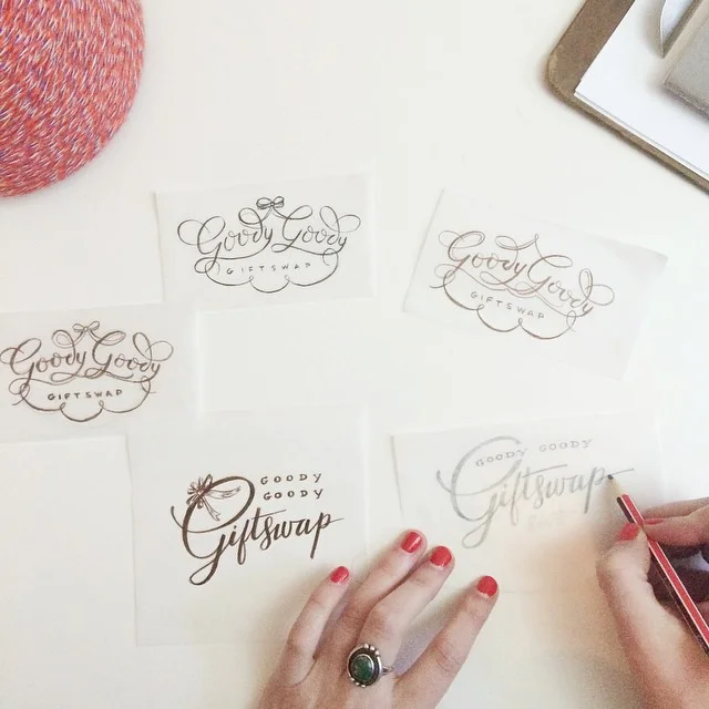 Hand lettered logo and nameplate for the second year of this annual holiday gift swap for creatives.