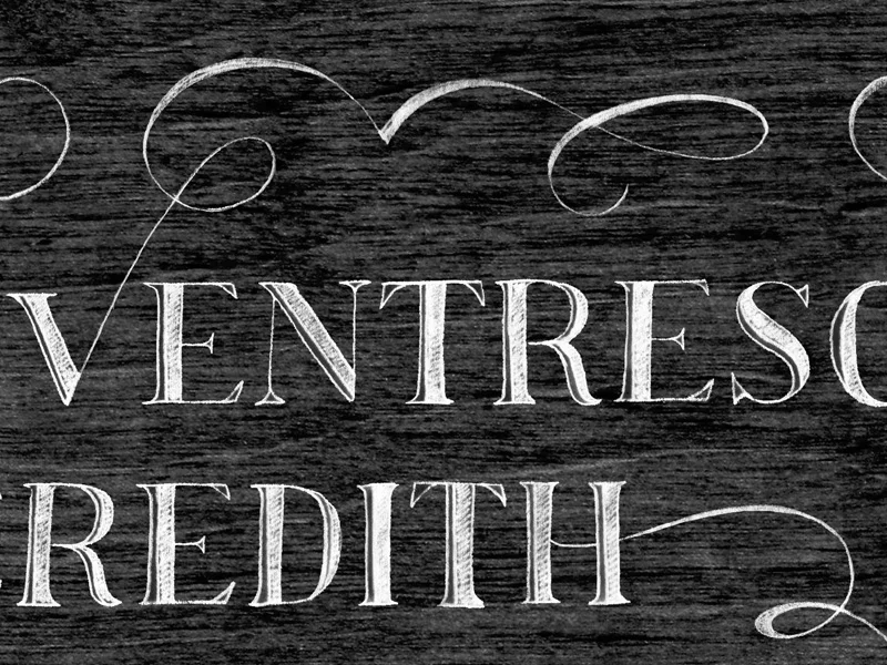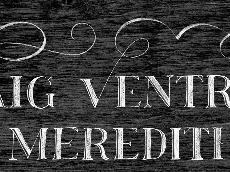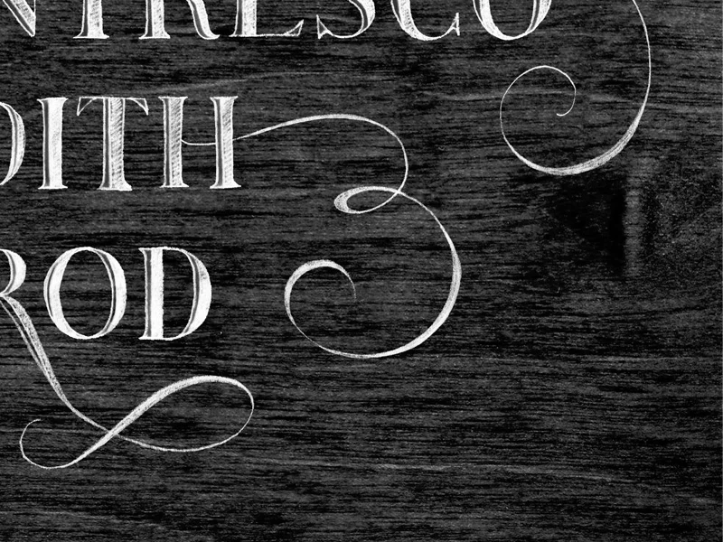 My vision for the lettering was something old timey, a little shabby, with a bit of rhythm. I used the original pencil drawing to keep the texture, and scanned in my wooden drawing board for a weathered effect.